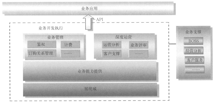 根據(jù)移動增值業(yè)務特征及業(yè)務部署、管理需求,目標網(wǎng)絡架構(gòu)中將實現(xiàn)業(yè)務與控制的分離,劃分業(yè)務控制域和業(yè)務開發(fā)執(zhí)行域,并可開放公共接口實現(xiàn)各增值業(yè)務應用無差別的接入、管理及功能調(diào)用,以方便的實現(xiàn)業(yè)務的融合、業(yè)務功能的靈活組合,更利于高效、簡便的實現(xiàn)業(yè)務部署、開發(fā)及運營。