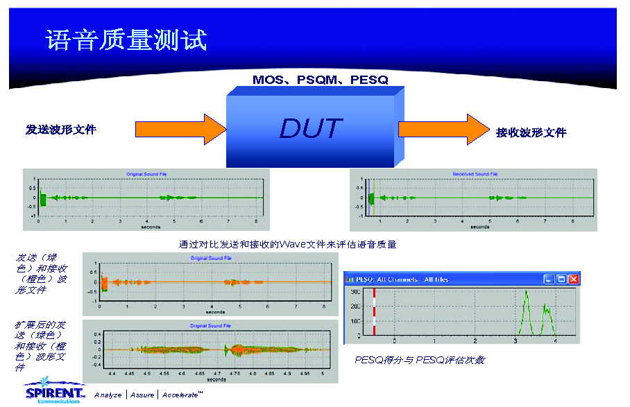 。3)PESQ(ITU-P.862),-0.5~4.5分,4.5分最好,屬于客觀評(píng)價(jià)指標(biāo),又稱(chēng)之為“話音清晰度”指標(biāo);另外,PESQ_LQ是PESQ評(píng)分標(biāo)準(zhǔn)的擴(kuò)展,范圍為1~4.5分,更接近于MOS的1~5分標(biāo)準(zhǔn);