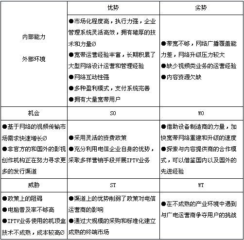 1.電信運(yùn)營(yíng)商、廣電運(yùn)營(yíng)商的SWOT分析