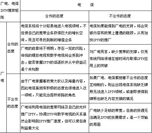 表3:IPTV領(lǐng)域廣電和電信的博弈矩陣
