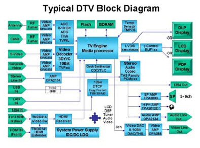一般來(lái)說(shuō),數(shù)字電視可以被分解為不到10個(gè)主要的模塊:顯示器(和驅(qū)動(dòng)器)、核心媒體引擎、音頻編解碼和處理、視頻編解碼和處理、調(diào)諧器、接口模塊和電源。對(duì)每一個(gè)模塊的絕對(duì)性能要求由你最喜歡的座位的舒適體驗(yàn)的性能水平來(lái)定義。
