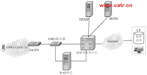 圖1 利用流媒體技術(shù)實現(xiàn)的手機電視業(yè)務(wù)網(wǎng)絡(luò)結(jié)構(gòu)
