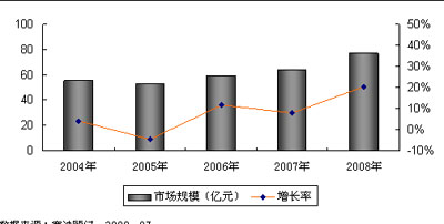 2008年隨著運(yùn)營商重組方案的確定,中國的電信運(yùn)營進(jìn)入了全業(yè)務(wù)時代。全業(yè)務(wù)運(yùn)營將打破目前電信運(yùn)營市場的競爭格局,使競爭愈加激烈。TD的試商用,標(biāo)志著3G時代的全面到來,2008年必將成為我國傳統(tǒng)電信業(yè)向信息服務(wù)業(yè)全面轉(zhuǎn)型的分水嶺。電信運(yùn)營支撐系統(tǒng)作為電信運(yùn)營管理的重要保證將發(fā)揮越來越重要的作用,根據(jù)賽迪顧問數(shù)據(jù)顯示,2008年上半年中國電信運(yùn)營支撐系統(tǒng)市場規(guī)模為45.3億元,預(yù)計2008年市場規(guī)模為76.8億元。