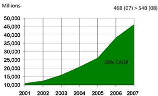 如今的全球化經(jīng)濟正在促使企業(yè)打破同事、合作伙伴、供應(yīng)商和客戶之間的地域界限。在許多情況下,面對面的溝通協(xié)作既花費昂貴又不合時宜,這推動企業(yè)開始轉(zhuǎn)向召開語音會議。對語音會議需求的復(fù)合年增長率(CAGR)已達到28%,每年的通話時間很快將超過500億分鐘,如圖1所示。