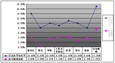 眾所周知,呼叫中心行業(yè)的競爭異常激烈,員工的工作任務及業(yè)務指標都異常繁重,同時,由于行業(yè)特殊性,員工的心理壓力大,滿意度低,離職率高更是一種普遍現(xiàn)象。然而,淮安中心反映員工狀態(tài)的一組數(shù)據(jù),卻讓人感到好奇:北京本源慧通資訊管理公司提供的專業(yè)心理測評顯示,淮安中心員工壓力水平遠遠好于行業(yè)內(nèi)平均水平(具體指標見圖1),同時2007年全年中心流失率8.5% ,保持了行業(yè)中領先水平。(行業(yè)流失率在30%左右)