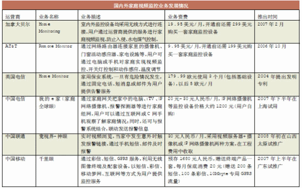 例如,在中國(guó)臺(tái)灣地區(qū),移動(dòng)運(yùn)營(yíng)商已經(jīng)推出了基于3G移動(dòng)網(wǎng)絡(luò)的無(wú)線視頻監(jiān)控業(yè)務(wù),用戶可通過3G手機(jī)對(duì)家庭情況進(jìn)行監(jiān)控。同時(shí),3G家庭終端(前端監(jiān)控設(shè)備)具備專業(yè)的無(wú)線遠(yuǎn)程監(jiān)控功能,當(dāng)出現(xiàn)盜賊入侵、意外失火或是煤氣泄漏等狀況,它會(huì)把報(bào)警信息發(fā)送到主人手機(jī)上,讓主人及時(shí)獲悉并做出處理。3G家庭終端還可以根據(jù)指令拍攝下家中的實(shí)時(shí)視頻畫面,并發(fā)到主人手機(jī)中供以后取證,這對(duì)于中高端家庭來說,具有相當(dāng)?shù)恼T惑力。