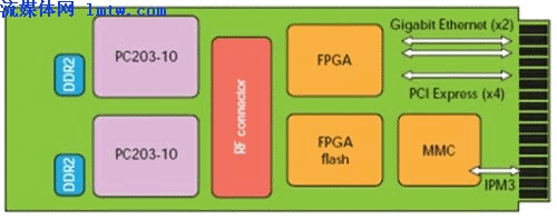 圖2:picoChip PC9608/9小型基站設(shè)計(jì)基于使用248或273迷你處理器的PC203 picoArray,可通過(guò)大量并行操作實(shí)現(xiàn)LTE的技術(shù)指標(biāo)。