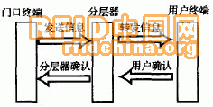 由門口終端發(fā)送一幀信息給分層器,分層器接收到以后,被呼叫的分層器將信息分發(fā)給本層所有的用戶終端,并等待用戶終端的確認(rèn)。被呼叫的用戶終端收到信息后,立即發(fā)送確認(rèn)信息給分層器,分層器收到以后,給門口終端發(fā)送確認(rèn)信息。門口終端收到分層器的確認(rèn)后,打開攝像頭和音頻麥克風(fēng),此時(shí)雙方可以進(jìn)行對話。