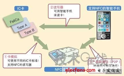 NFC(Near Field Communication)是一種采用13.56MHz頻帶的近距離無(wú)線(xiàn)通信技術(shù)。雖然通信距離僅為10cm左右,不過(guò)和非接觸式IC卡技術(shù)一樣,“只需碰一下”,便可在不同的電子產(chǎn)品間交換數(shù)據(jù)。