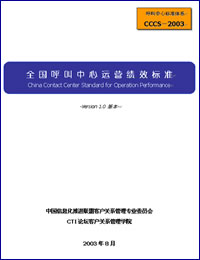 《全國呼叫中心運營績效標(biāo)準(zhǔn)》(China Contact Center Standard for Operation Performance,簡稱"CCCS-OP-2003標(biāo)準(zhǔn)"),是由CTI論壇客戶關(guān)系管理學(xué)院負(fù)責(zé)策劃和起草,并聯(lián)合該領(lǐng)域內(nèi)具有代表性的客戶服務(wù)提供商、運營商一起同心協(xié)力,站在行業(yè)發(fā)展的最前沿,共同創(chuàng)建的客戶服務(wù)及呼叫中心行業(yè)運營標(biāo)準(zhǔn),并最終由信息產(chǎn)業(yè)部中國信息化推進(jìn)聯(lián)盟客戶關(guān)系管理專業(yè)委員會發(fā)布實施的行業(yè)標(biāo)準(zhǔn)。該標(biāo)準(zhǔn)填補了國內(nèi)在該領(lǐng)域的一項空白,并將帶動整個行業(yè)不斷地向前發(fā)展。