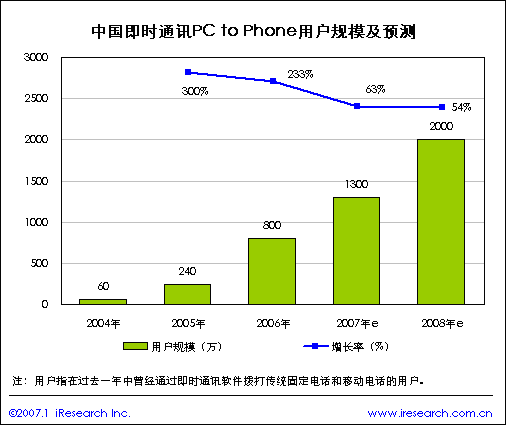 2004年10月以前中國使用PC to Phone的VOIP用戶非常少,且主要是使用國外運(yùn)營商提供的服務(wù),像Skype、TELTEL和dialpad等。隨著Skype登錄中國,一些國內(nèi)公司聯(lián)合地方的電信運(yùn)營商以“增值服務(wù)”的形式推出具有PC to Phone功能的即時通訊軟件。