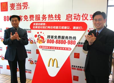 麥當(dāng)勞開通長三角800顧客免費(fèi)服務(wù)熱線