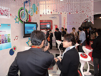 在通信展上,中國移動(dòng)在展場核心區(qū)展示了面向2008年奧運(yùn)會的奧運(yùn)無線業(yè)務(wù)和全曲下載“音樂隨身聽”,中國聯(lián)通則重點(diǎn)展示了其最具特色的整首音樂下載業(yè)務(wù),吸引了大批觀眾。許多觀眾還在中國移動(dòng)和中國聯(lián)通無線音樂展臺前,現(xiàn)場聆聽各種動(dòng)聽的歌曲,體驗(yàn)無線音樂的魅力?梢哉f,手機(jī)音樂成為手機(jī)娛樂業(yè)務(wù)中最受人們關(guān)注的亮點(diǎn)。