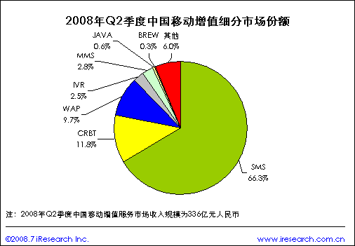 推薦本文根據(jù)艾瑞咨詢最新發(fā)布的《2008年第二季度中國 移動增值市場監(jiān)測報告》的相關(guān)數(shù)據(jù)顯示,08年第二季度中國移動增值服務市場的收入規(guī)模為336億元人民幣,其中傳統(tǒng)增值業(yè)務占據(jù)大部分市場份額,尤其是短信業(yè)務,在增值服務市場上的份額達到了66.3%.預計隨著電信業(yè)重組的逐步完成及3G新業(yè)務的推出將對增值服務市場的發(fā)展起到積極的推動作用,傳統(tǒng)短信業(yè)務的市場份額將會緩慢下降!
