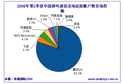 2008年第2季度中國即時(shí)通訊活躍帳戶數(shù)達(dá)4.26億 飛信躍居第二位