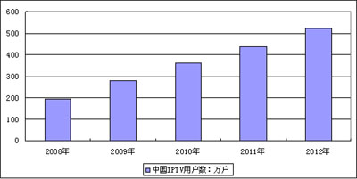 圖3 2008年-2012年中國(guó)IPTV用戶(hù)數(shù)