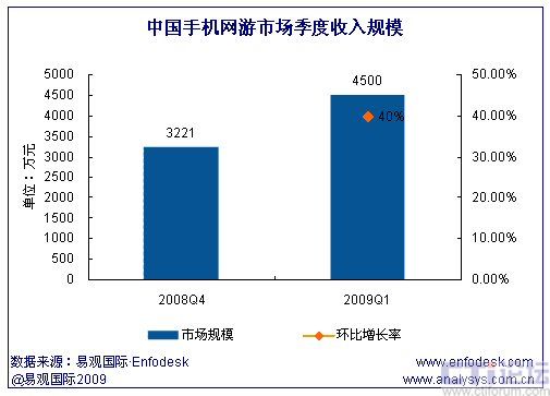 2009年第1季度中國手機網(wǎng)游市場規(guī)模為4500萬元 用戶規(guī)模達330萬人