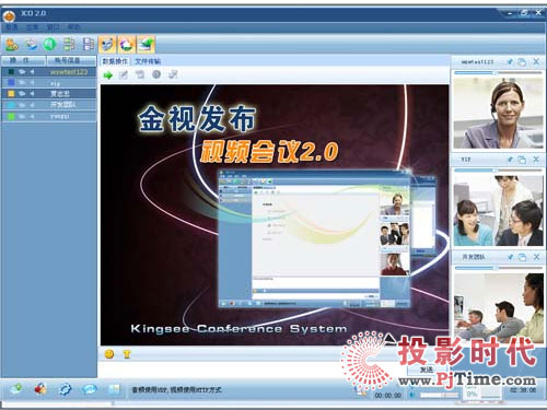金視視頻會議系統(tǒng)(Kingsee Conference)是一款視頻會議+即時通訊(IM)的軟件,提供給用戶的是一個全面的、通用的多媒體通訊平臺,用戶可以利用普通的PC機、標準的視頻采集設(shè)備、耳機和麥克風(fēng),實現(xiàn)基于Internet的虛擬會議,金視視頻會議(Kingsee Conference)可以提供多種級別的視頻會議解決方案,實現(xiàn)從桌面級到會議室級的不同應(yīng)用。與傳統(tǒng)的硬件視頻會議解決方案相比,用戶不需要投入昂貴的成本,就能夠?qū)崿F(xiàn)高質(zhì)量、高可靠性的音視頻通訊、協(xié)同工作、文檔共享、遠程會議管理等多項功能,有效地節(jié)約時間和成本,并提高企業(yè)的工作效率。