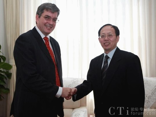 CTI論壇(ctiforum)09月04日消息: 近日,北京市副市長(zhǎng)茍仲文在北京市政府會(huì)見(jiàn)Research In Motion (RIM)公司新上任的中國(guó)區(qū)總裁謝國(guó)睿(Gregory Shea), 席間謝國(guó)睿對(duì)於RIM公司中國(guó)有限公司在中國(guó)正式成立,表示十分欣喜。