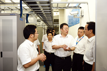 河南洛陽市12580家庭服務呼叫中心經(jīng)過一段時間的試運行,目前已有200多家家庭服務業(yè)公司加入該呼叫中心,實現(xiàn)了保姆、月嫂、保潔、開鎖、家教、婚慶、送鮮花、快遞、送餐和鐘點工等十幾項服務,并將逐步擴大到50多項服務。圖為洛陽市副市長高頌革(右三)在洛陽移動公司視察指導工作。
