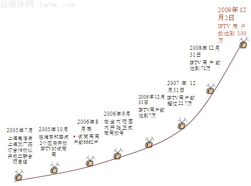 上海電信IPTV用戶12月3日突破百萬(wàn)大關(guān),比原本預(yù)計(jì)的發(fā)展時(shí)間提前了近一個(gè)月。從2006年10月正式商用,發(fā)展到2009年12月,上海已經(jīng)成為全球最大的IPTV本地網(wǎng)并且是唯一用戶規(guī)模過(guò)百萬(wàn)的城市。
