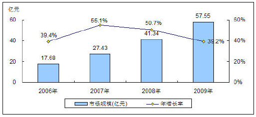 2009年BPO受到金融危機的影響呈現(xiàn)出前低后高的發(fā)展態(tài)勢,上半年,國際國內企業(yè)的觀望,使得市場規(guī)模同比出現(xiàn)了下降,但是隨著經(jīng)濟的企穩(wěn)回升,下半年外包業(yè)務持續(xù)好轉,整個BPO行業(yè)仍然保持了較高增長率。2009年,中國BPO市場整體規(guī)模達到57.55億元,同比增長39.2%。