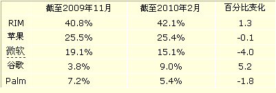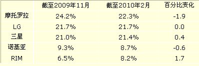北京時間4月6日上午消息,據(jù)國外媒體報道,美國互聯(lián)網(wǎng)流量監(jiān)測機構(gòu)comScore周一發(fā)布的報告顯示,2009年12月至2010年2月期間,摩托羅拉以22.3%的市場份額位列全美第一大手機原始設(shè)備制造商(以下簡稱“OEM”),RIM則以42.1%的市場份額位居全美第一大智能手機平臺。