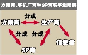 中國移動2007年1月出臺的《移動夢網(wǎng)SP合作管理辦法》規(guī)定,禁止SP和終端廠家直接進行終端內(nèi)置業(yè)務(wù)的合作。但是,大部分國產(chǎn)手機生產(chǎn)環(huán)節(jié)當(dāng)中,都有一個重要的角色,那就是手機方案商。方案商主要負責(zé)提供整套手機設(shè)計方案,包括研發(fā)手機主板、設(shè)計操作系統(tǒng),他們把帶有操作系統(tǒng)的主板賣給手機生產(chǎn)商,生產(chǎn)商再采購?fù)鈿ぁ⒁壕恋炔考M裝成成品手機。