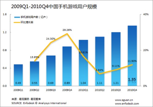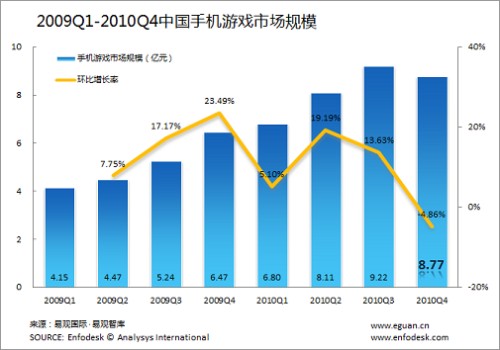 2010年Q4手機(jī)游戲市場(chǎng)規(guī)模8.77億首次出現(xiàn)負(fù)增長(zhǎng)