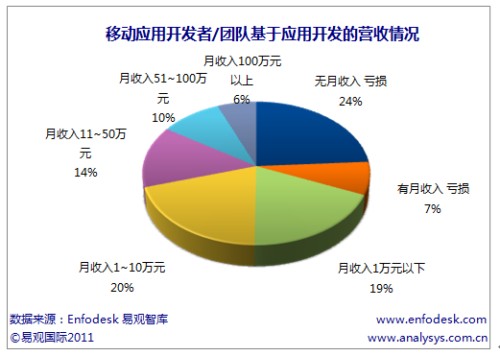 CTI論壇(ctiforum)3月11日消息(記者:張潔)新興移動互聯(lián)網(wǎng)終端的快速發(fā)展以及終端廠商“終端+應(yīng)用商店”的商業(yè)模式帶動了上游應(yīng)用開發(fā)者的投入力度。據(jù)易觀國際(Analysys International)最新報告《中國應(yīng)用開發(fā)者/團隊研究報告2011》研究發(fā)現(xiàn),現(xiàn)階段應(yīng)用開發(fā)者主要開發(fā)免費應(yīng)用,整體盈利不夠明顯。