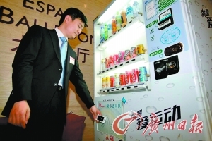 昨日,深圳本土研發(fā)的手機支付自動售貨機亮相,市民直接拿手機在自動售貨機上一刷,就能買飲料和食品。該系統(tǒng)支付主要依靠全球首款智能SD手機存儲支付卡,市民只需將此卡插入手機,便能輕松實現手機支付。有關負責人表示,或將把新一代自動售貨機投入大運村供運動員使用。