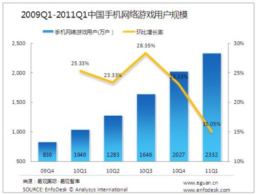 2011年第1季度中國手機(jī)網(wǎng)絡(luò)游戲市場(chǎng)規(guī)模達(dá)2.55億