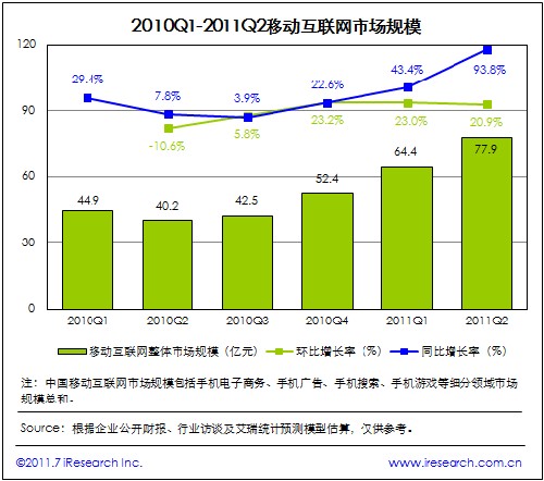2011Q2中國(guó)移動(dòng)互聯(lián)網(wǎng)市場(chǎng)規(guī)模達(dá)77.9億元