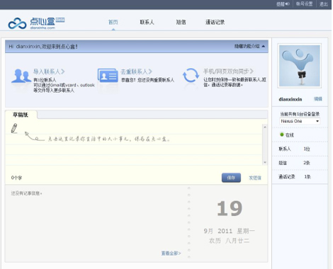 9月22日消息,繼點心桌面、點心省電等點心系列應用發(fā)布之后,點心系列軟件迎來了新成員――點心盒同步,點心盒同步能即時將聯(lián)系人、短信、通話記錄同步備份在云端,并且支持云端管理資料和收發(fā)信息,目前支持Android2.2及其以上版本。