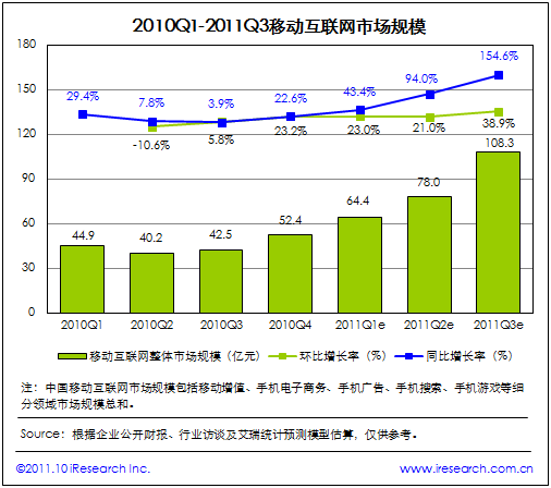 2011Q3中國移動(dòng)互聯(lián)網(wǎng)市場規(guī)模達(dá)108.3億元