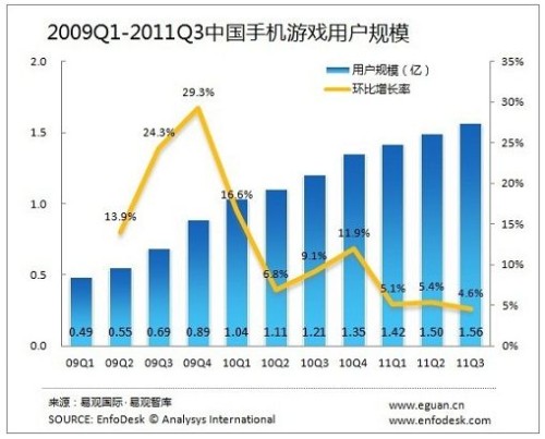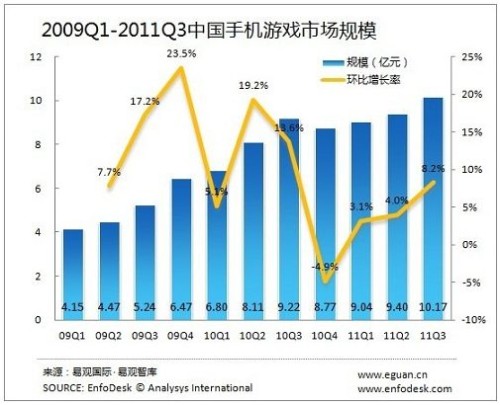 2011年第3季度手機游戲市場規(guī)模突破10億元
