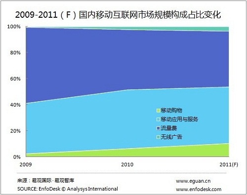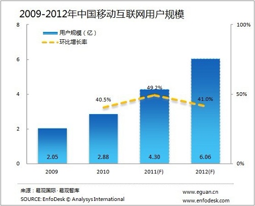 2011年中國移動互聯(lián)網(wǎng)市場規(guī)模達(dá)851億