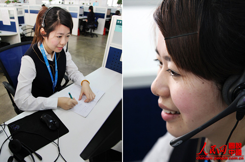 沈青青,今年24歲,湖州人,擔任浙江移動10086接線員已經(jīng)兩年了,是2011年下半年度杭州濱江中心的服務明星。她每天要接聽至少200-300個電話,每次她總能以甜美的聲音為顧客解決一個又一個的問題。