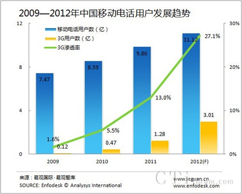 易觀智庫(kù):2012年3G用戶(hù)數(shù)或?qū)⒊^(guò)3億