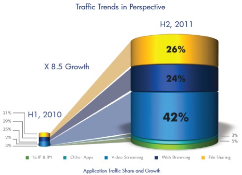 2011下半年流媒體占全球移動通信帶寬的42%
