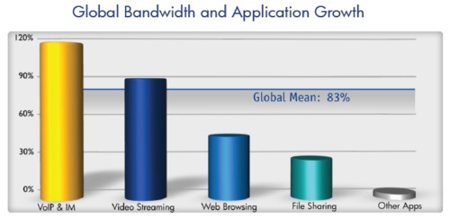 Allot 通訊公司在2012年2月出的報告中,2011年下半年,視頻流媒體在手機流量中始終占著絕對優(yōu)勢,相比2010上半年的占全球帶寬比35%,增長到了42%;網絡共享排第二位,占26%,相比2010上半年下降了31%;同時網頁瀏覽量也有所下降,同期從29%下降到24%;網絡電話與即時訊通在下半年僅僅占了3%。整體來看,全球手機無線業(yè)務流量在下半年相比上半年增長了83%,復合年增長率為234%。