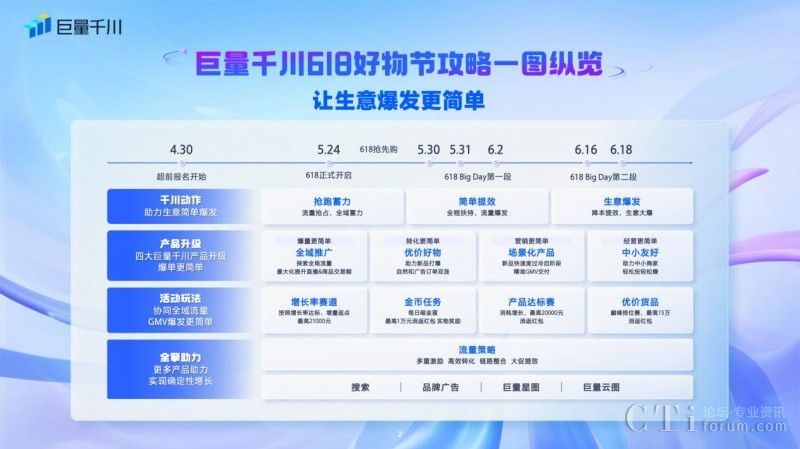 在此次巨量千川618好物節(jié)中,搜索廣告、巨量星圖、品牌廣告、巨量云圖,作為抖音生態(tài)的重要組成部分,也會為商家提供支持。