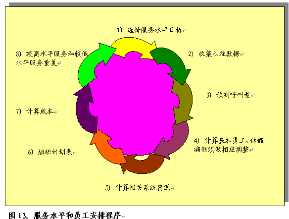 要準(zhǔn)確預(yù)測(cè)員工需求量,至少需要四個(gè)月的相關(guān)數(shù)據(jù)。這些數(shù)據(jù)將收錄在自動(dòng)工作表制訂工具中。圖13舉例說(shuō)明了呼叫中心可采取的此類(lèi)步驟。