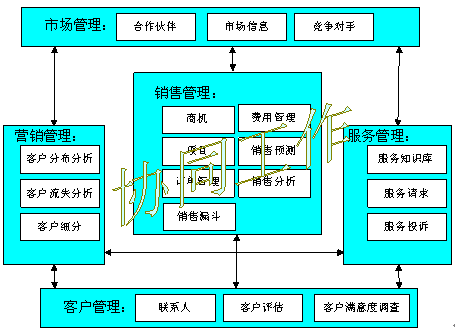 圖3CRM系統(tǒng)實現(xiàn)客戶管理、銷售、服務(wù)、營銷、市場之間協(xié)同工作