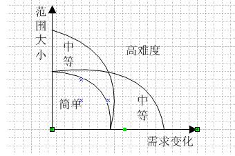 如對(duì)于一些成長型的企業(yè),他們由于業(yè)務(wù)、客戶等等都處于一個(gè)成長期,所以在項(xiàng)目的實(shí)施過程中,這個(gè)需求變化可能會(huì)比較頻繁。根據(jù)筆者的經(jīng)驗(yàn),一個(gè)成長型的企業(yè),從需求提出到最后項(xiàng)目上線,中間可能50%以上的需求會(huì)進(jìn)行不同程度的調(diào)整。毋庸置疑,這就會(huì)給項(xiàng)目帶來不少的挑戰(zhàn)。從理論上說,實(shí)施顧問遇到這種情況,應(yīng)該建議企業(yè)先暫時(shí)擱置這個(gè)項(xiàng)目。等到需求穩(wěn)定了,再上這個(gè)項(xiàng)目。但是實(shí)施顧問往往不會(huì)這么做,因?yàn)檫@會(huì)影響到他們自己企業(yè)的業(yè)績。為此實(shí)施顧問在遇到這種情況的時(shí)候,只有退而求其次了。即當(dāng)需求變化比較大的時(shí)候,只有通過縮小項(xiàng)目的范圍,來減少需求的絕對(duì)數(shù)量。需求的絕對(duì)數(shù)量減少了,那么需求的變化量也會(huì)降低。從而可以達(dá)到降低項(xiàng)目難度的目標(biāo),可以將項(xiàng)目的難度設(shè)置在中等難度這個(gè)級(jí)別。