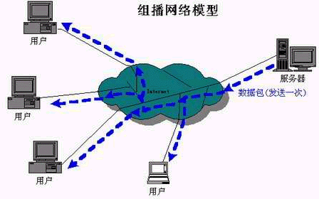 人們提出各種方案:增加互連帶寬,改變網(wǎng)絡(luò)流量結(jié)構(gòu),IP組播技術(shù)等等,其中,IP組播技術(shù)有其獨(dú)特的優(yōu)越性——在組播網(wǎng)絡(luò)中,即使用戶數(shù)量成倍增長,主干帶寬不需要隨之增加。