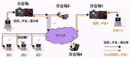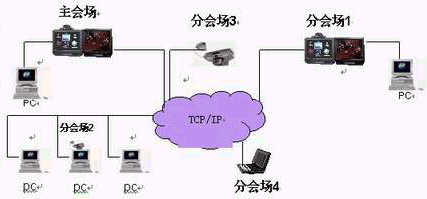 會(huì)議的組織,召開,管理由主會(huì)場來完成。因此,主會(huì)場的視頻,聲音,通知,指示,下達(dá)的文件資料各分會(huì)場都應(yīng)該收到。當(dāng)某分會(huì)場發(fā)言時(shí),其視頻,聲音同樣要傳送給其他會(huì)場。(如下圖所示)上述所有動(dòng)作的完成依賴組播技術(shù)。通過組播技術(shù)把主會(huì)場的各種數(shù)據(jù)發(fā)送到參加會(huì)議的分會(huì)場中,而且把發(fā)言分會(huì)場的視音頻數(shù)據(jù)發(fā)送給其他會(huì)場:即主會(huì)場和發(fā)言分會(huì)場的各種數(shù)據(jù)只要在網(wǎng)上發(fā)送一次,其他會(huì)場都將收到此數(shù)據(jù),(這就是有別于點(diǎn)對點(diǎn)通信方式的地方)而與這兩個(gè)會(huì)場在同一網(wǎng)段卻不參加會(huì)議的非成員不會(huì)收到數(shù)據(jù)(只要設(shè)備支持,這也是有別于廣播的地方)。因此,當(dāng)會(huì)議成員增加時(shí),不會(huì)產(chǎn)生信息傳輸量劇增,帶來無法忍受的網(wǎng)絡(luò)延時(shí)和抖動(dòng)。