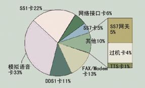 經(jīng)過(guò)對(duì)用戶(hù)抽樣調(diào)查,目前各用戶(hù)使用的語(yǔ)音卡類(lèi)型如圖1分布。從圖1可以看出,語(yǔ)音卡目前應(yīng)用最多的還是模擬語(yǔ)音卡,比例為33%,其次是SS1卡,比例為22%,第三位的卡是傳真卡,比例為13%。