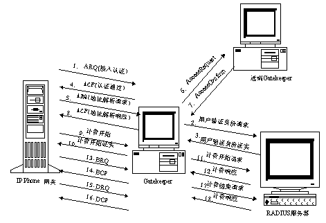 2、用戶認證:網(wǎng)關(guān)用ARQ把用戶卡號和密碼發(fā)給網(wǎng)守,網(wǎng)守再把卡號和密碼送給計費認證中心,如果計費認證中心認證通過,網(wǎng)守向網(wǎng)關(guān)發(fā)ACF,否則回ARJ。