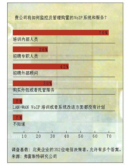 知道電話用戶的撥打習(xí)慣對于確;贗P的通話音質(zhì)清晰、不中斷起到了重要作用。Korsuth問: “人們使用電話的時(shí)間有多長?他們需要多少語音郵件?因?yàn)檎Z音是另一種IP數(shù)據(jù)包,所以如果許多學(xué)生下載MP3文件或者進(jìn)行對等連接而導(dǎo)致網(wǎng)絡(luò)擁塞,你就得限制流量速率。”